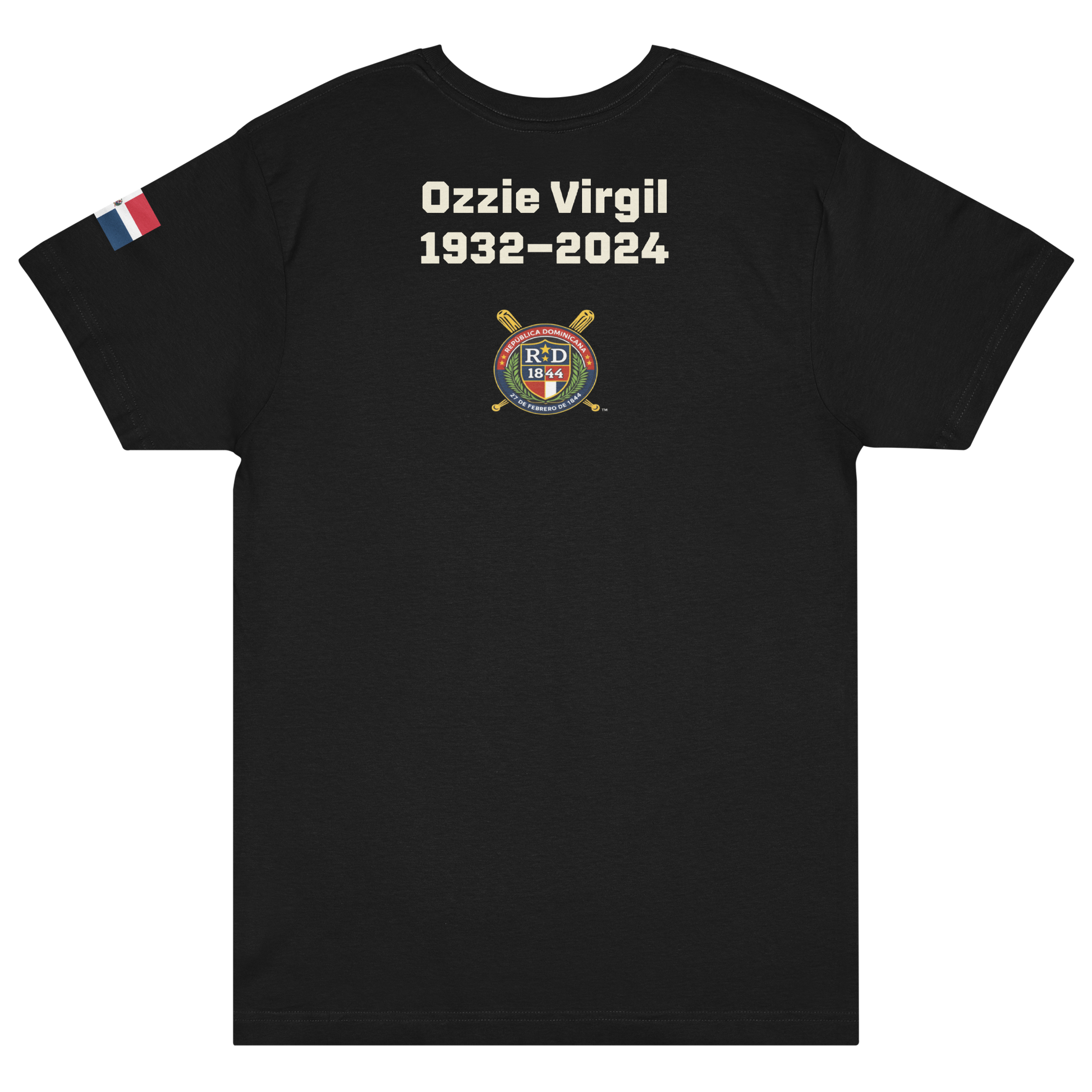 Featuring a classic illustration of Ozzie Virgil and the RD 1844 crest, this design celebrates Dominican pride, baseball heritage, and the legacy of a true pioneer.