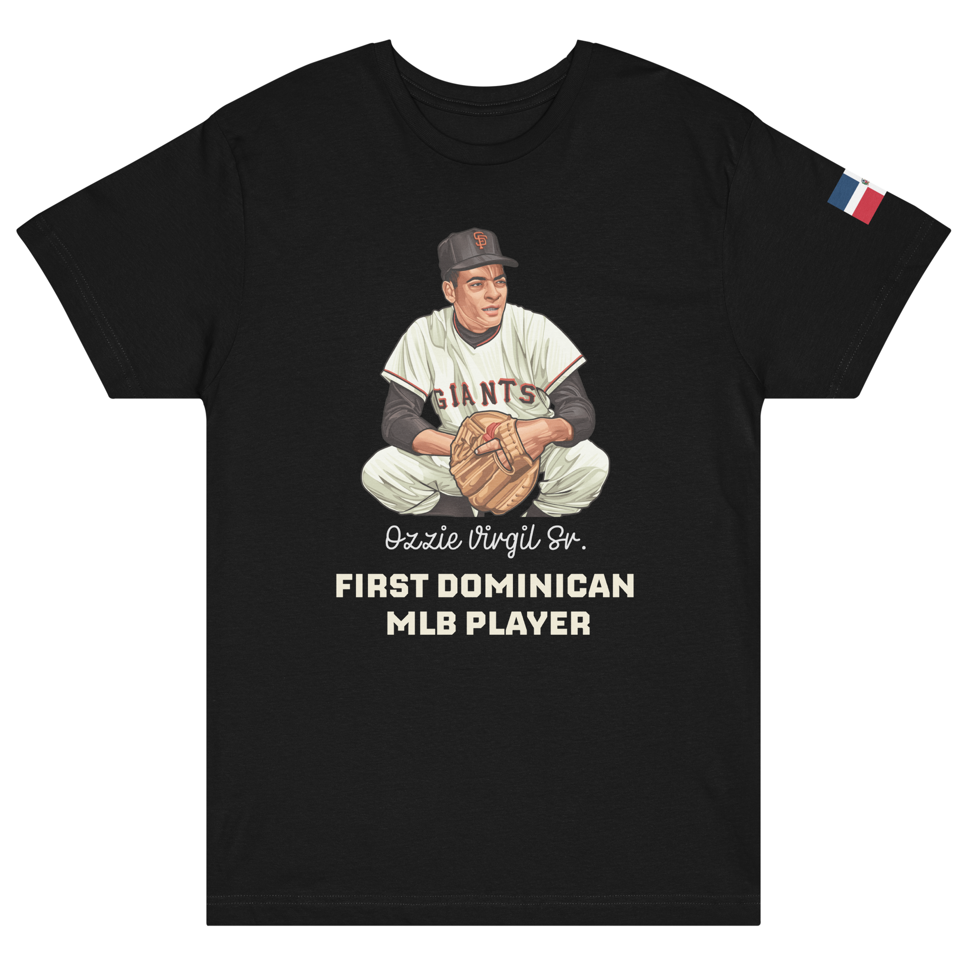 This tribute tee honors Ozzie Virgil Sr., the first Dominican player in Major League Baseball. His historic debut opened the door for generations of Dominican athletes who would go on to shape the game of baseball.